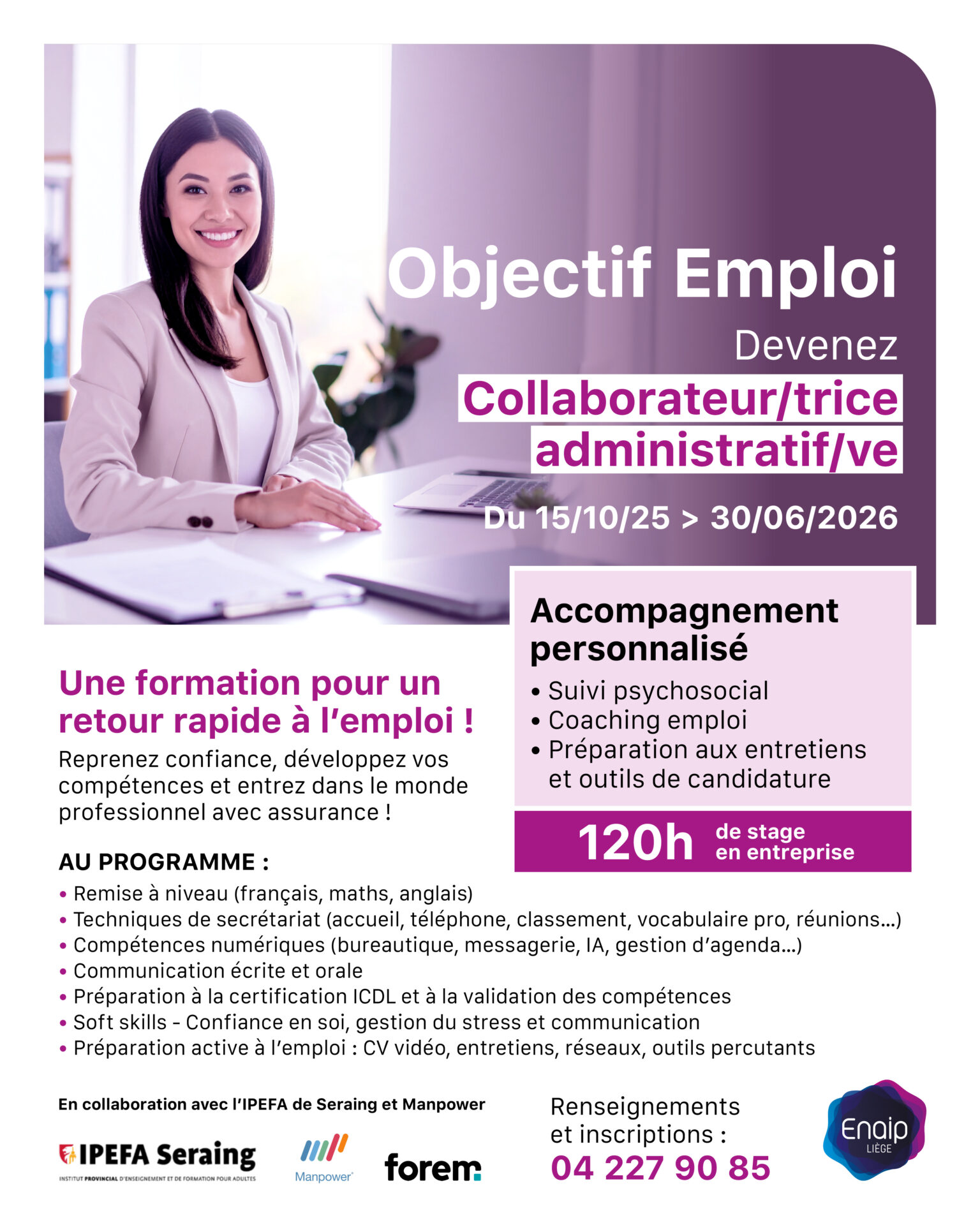 L’Enaip en pays de Liège fut agréée en qualité OISP.